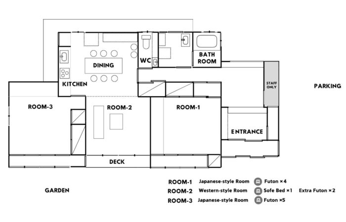 九谷焼の里として知られる石川県能美市にある一棟貸しのゲストハウスです。自然に囲まれた静かな里山で、お庭を眺めながらゆったりお過ごしください。虚空蔵山へのハイキング、遣水観音山や白山などの登山のベースにもどうぞ。