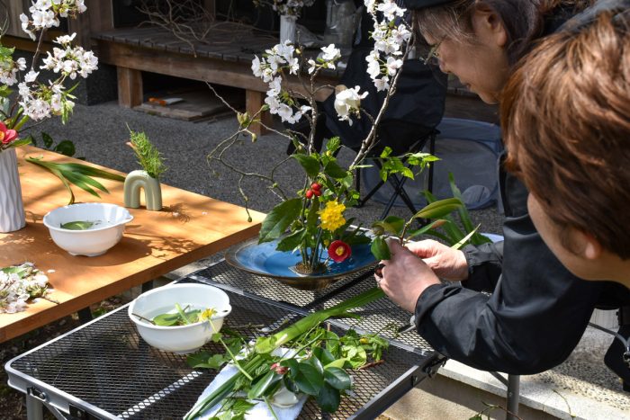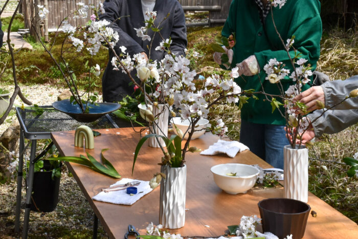 里山の草花でいけばなを。出会える草花はその季節、その時々の「一期一会」。その瞬間のインスピレーションを軸に、自身の感性と向き合う時間。それは自然を通した自身への「没入体験」。出来上がった作品は「今の自分」そのもの。日々の喧騒を離れ、向き合うからこそ出会える「自分」。